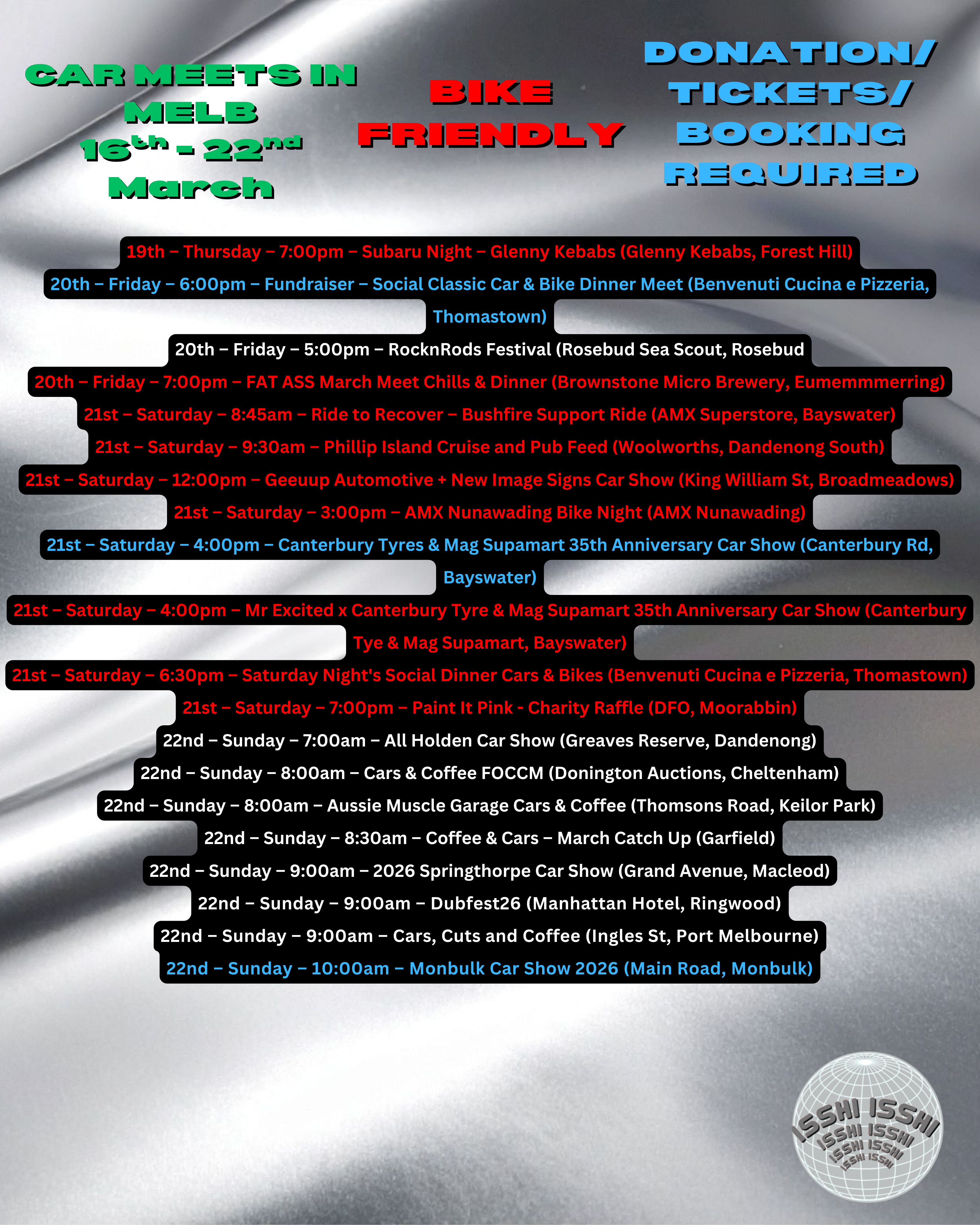moving forward, members of the mailing list will be able to get the usual weekly meet list, as well as information about the biggest meets of the week (and direct links to them on Facebook) without having to check our posts!